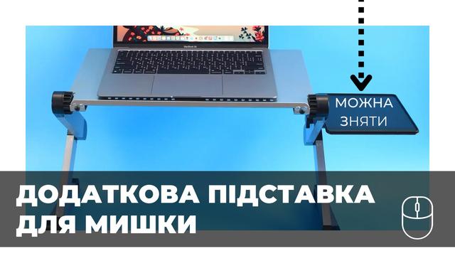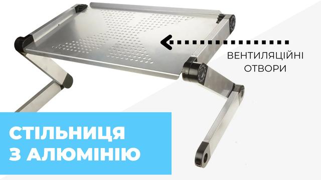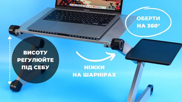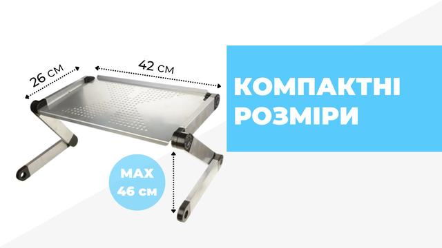 Портативный складной столик трансформер для ноутбука - практичный аксессуар, который сделает ваше времяпрепровождение за работой или развлечениями более комфортным. Легкий и одновременно прочный, выполнен из алюминия.